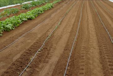 Drip tape can be used to concentrate the water right where it is needed. This helps reduce water usage and control weeds. |